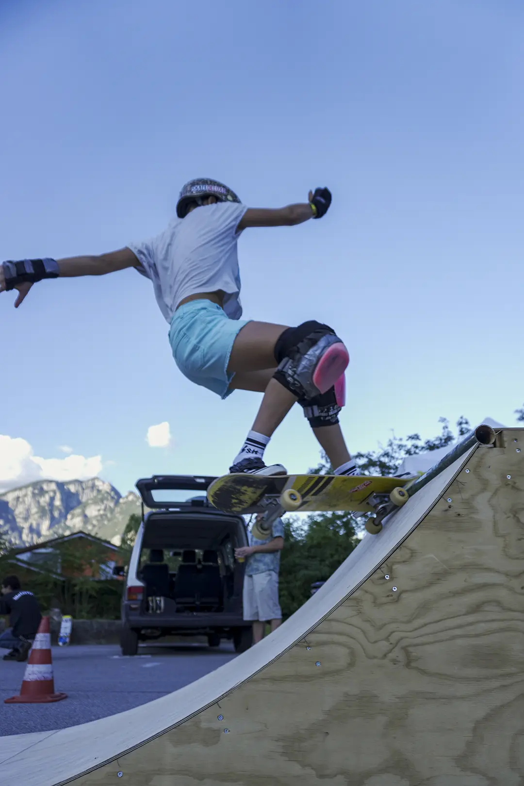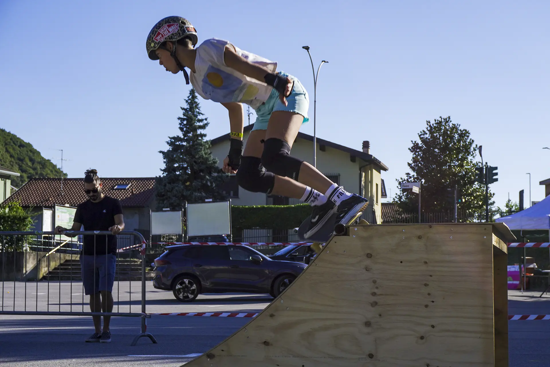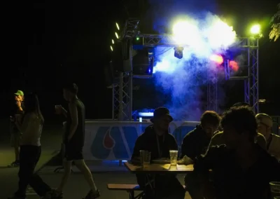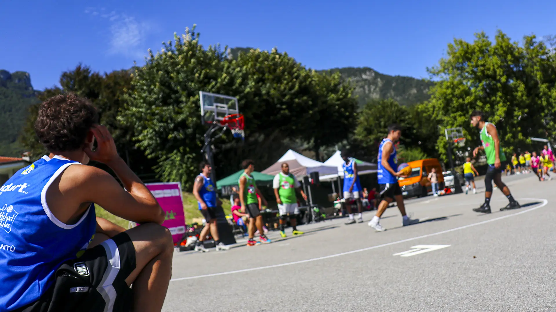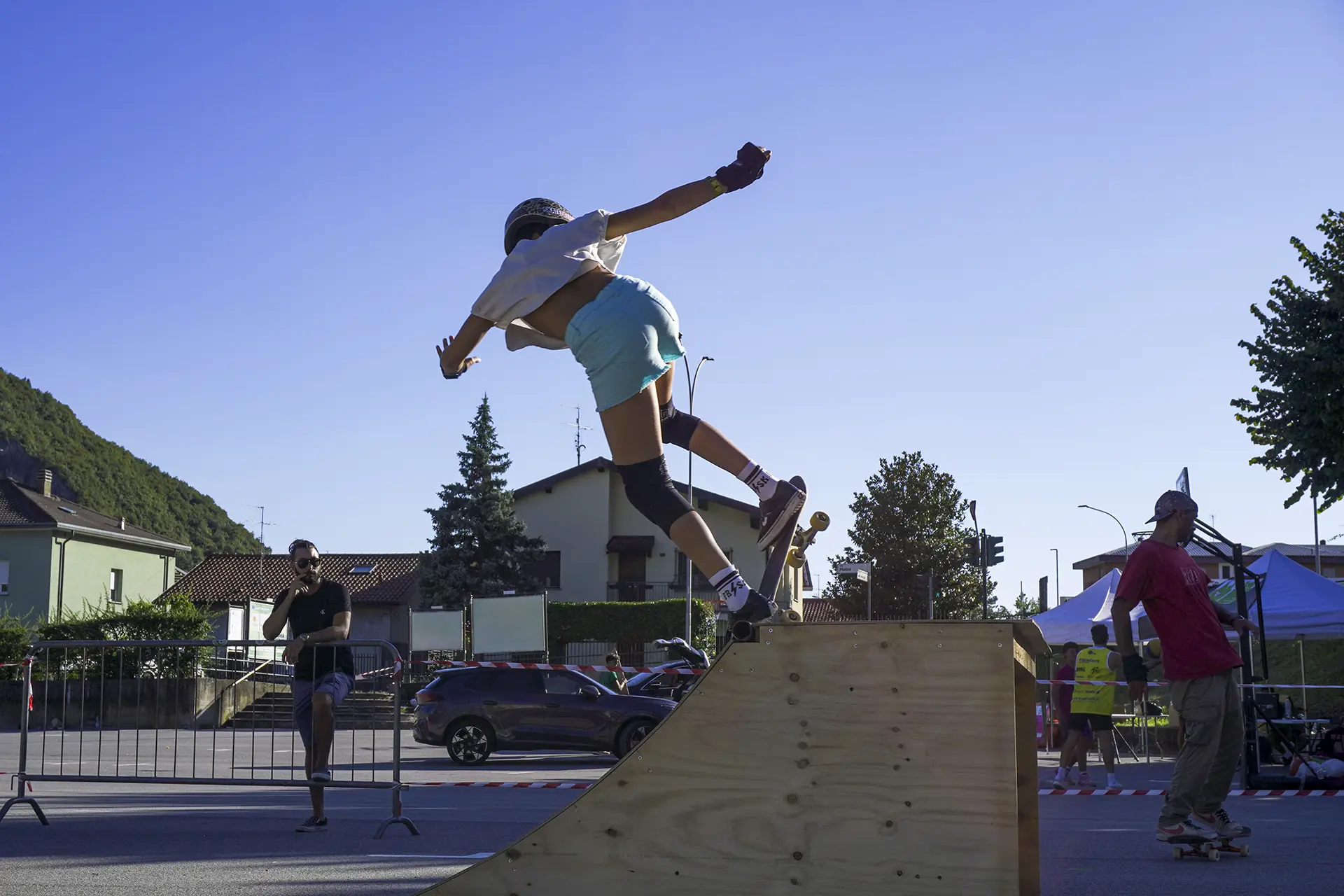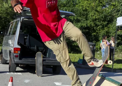 La città che cresce e respira ha bisogno di un cuore che batta al ritmo giusto, ma anche di un cuore che sappia ancora sentire e non sia atrofizzato. Ispirandomi al tema proposto, il mio murale raffigura il motore di un essere vivente: una città composta in equilibrio dalla roccia montuosa, che però respira e, porosa, si lascia oltrepassare trattenendo il meglio; e dall’acqua del lago, che la avvolge e la custodisce senza imbrigliarla. L’acqua, fluida, scorre attorno: è un cuore che, sullo sfondo, lascia in ombra le catene arrugginite di un passato industriale, per illuminarsi con qualcosa di nuovo che arriva. Un cuore che vuole rimanere umano, e continuare a sentire, senza